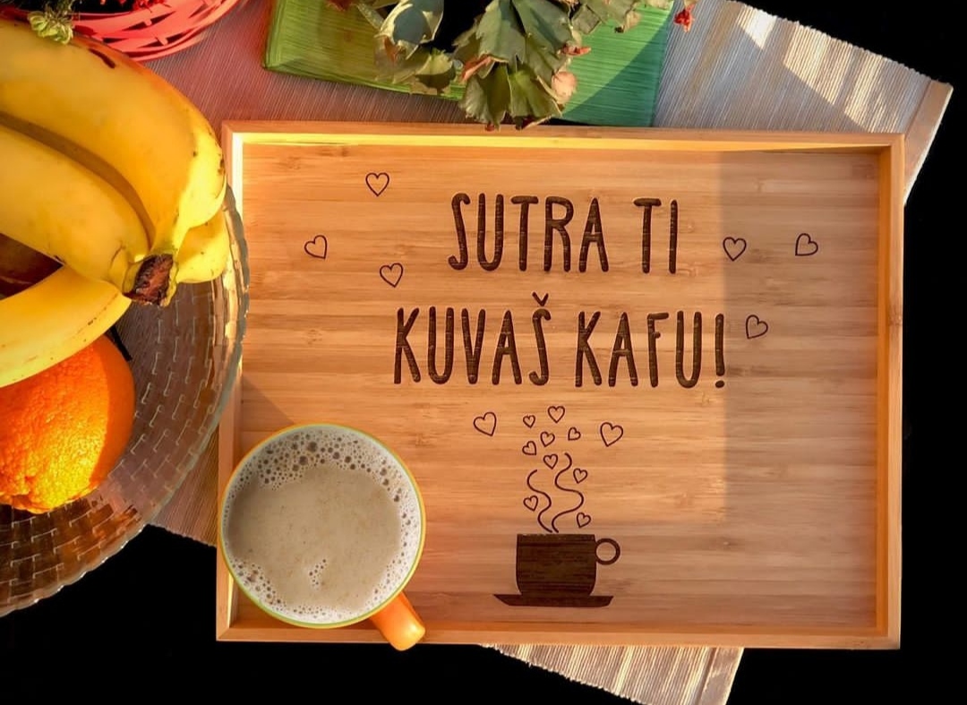 Poslužavnik je od bambusa i dimenzija 25×33, a porukicu možete izabrati i vi! ☺️